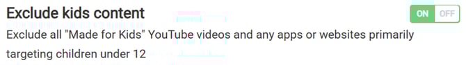 Reduce risk to brand safety to opting out of appearing on content themes categorised by Google - e.g. content related to Religion. Applying the exclusion for 'Content suitable for families' will also help prevent wasted spend by excluding your ads from 'Made for kids' placements.