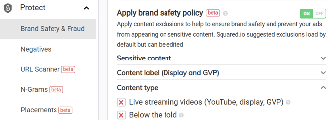 These exclusions are available in the content suitability settings in Google Ads - if enabled in Squared.io, we'll ensure they're applied consistently across your account/s for you.