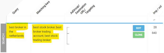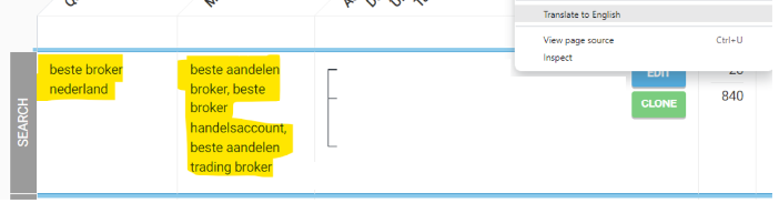 This will update all queries on the page and the "matching kws" column to English, so you can quickly see which queries are relevant to be added and if the ad group we're suggesting adding the query to is the best place!