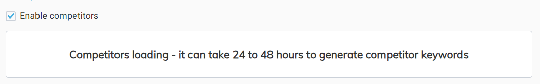 It can take 24-48 hours to load competitors. If after this time you're still seeing the message "Competitors loading - it can take 24 to 48 hours to generate competitor keywords", it's often due to the account targeting multiple countries.