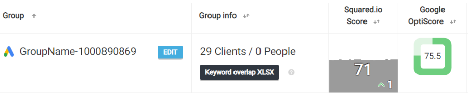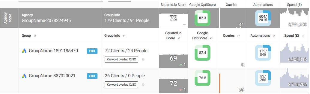 Now your groups have been created you can see how they stack up in terms of scores, OptiScore, query and automation adoption.