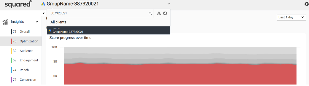 With your accounts now grouped, you can find the new group in the drop-down at the top of the page. In this view, you'll be able to see and download the insights for all accounts in place - saving you jumping from account to account for the insights you're working through.