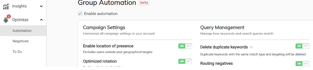 You can apply the automation options at group level - helping you deliver high quality standards consistently across all accounts. You can find out more about automation here.