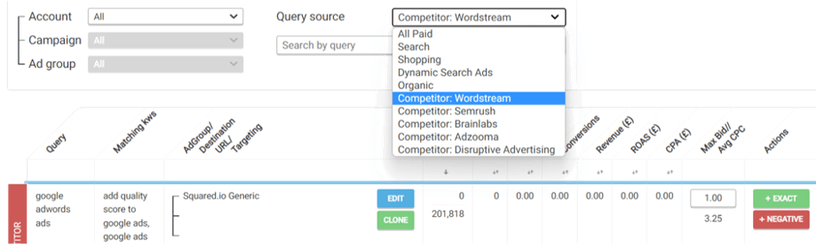 These queries can be added straight into your account as new keywords if you want to maximise your presence on the results page.