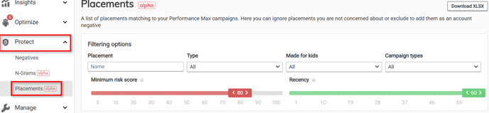 - Recency: Filter to placements that have been used in the last X number of days (default 60 days)