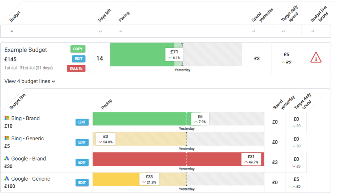 That’s why we’ve created a new budgets feature to help you track budget pacing quickly and easily across all your accounts.