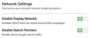 - Disable Display Network and Search Partners will automatically opt Search campaigns out of the Display Network and Search Partner Networks.