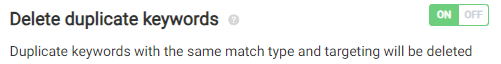 Having duplicate keywords will result in your keywords competing for the same query. When you turn on this automation, we will determine which keyword is the 'duplicate' and remove it by traffic volumes.
