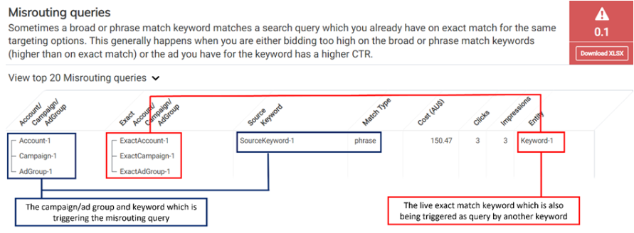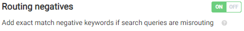 When queries you have live as an exact match keyword are picked up by a different keyword it can result in queries matching to a less relevant and poorer performing keyword. Ensure queries trigger the right keyword with the 'Routing negatives' automation.